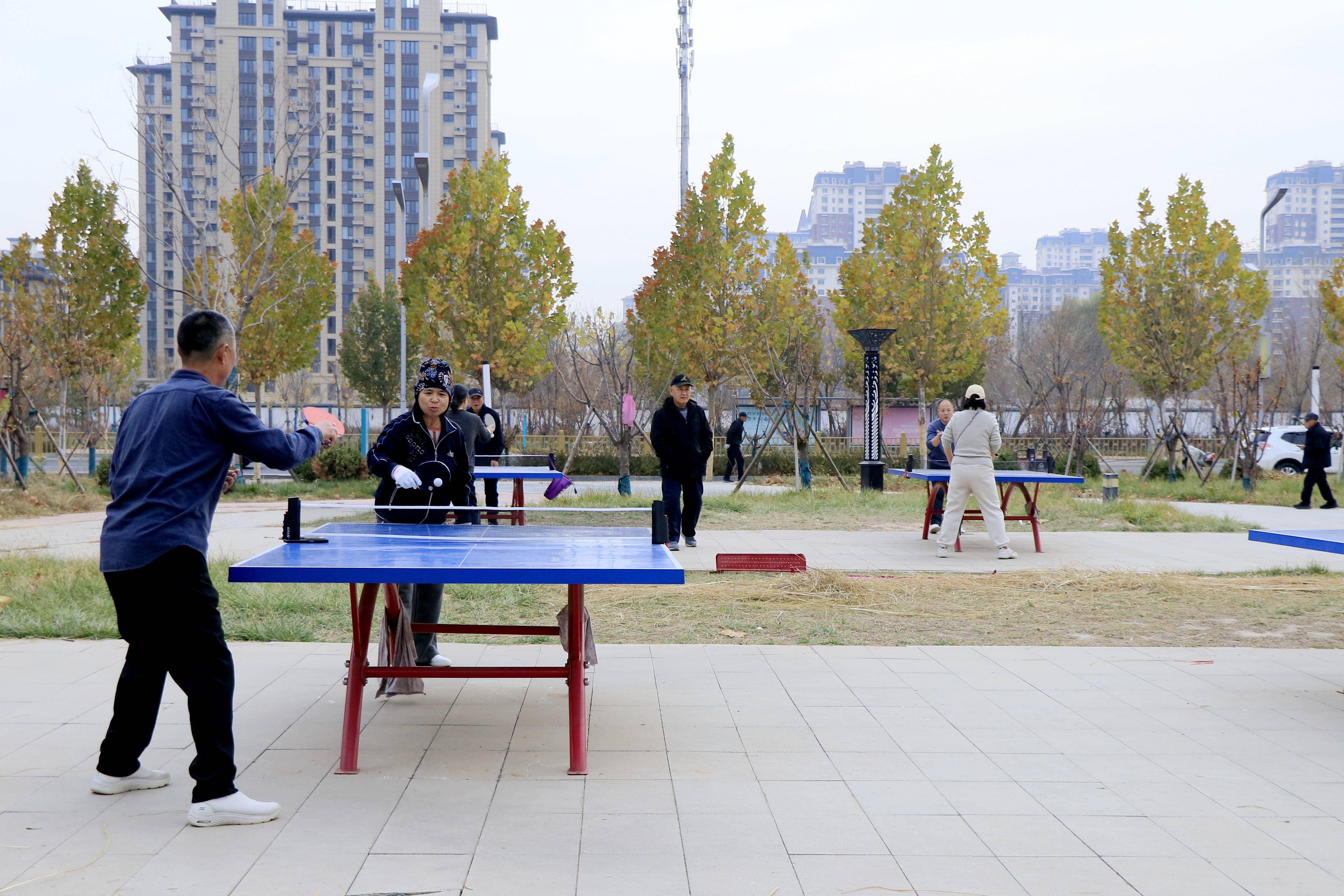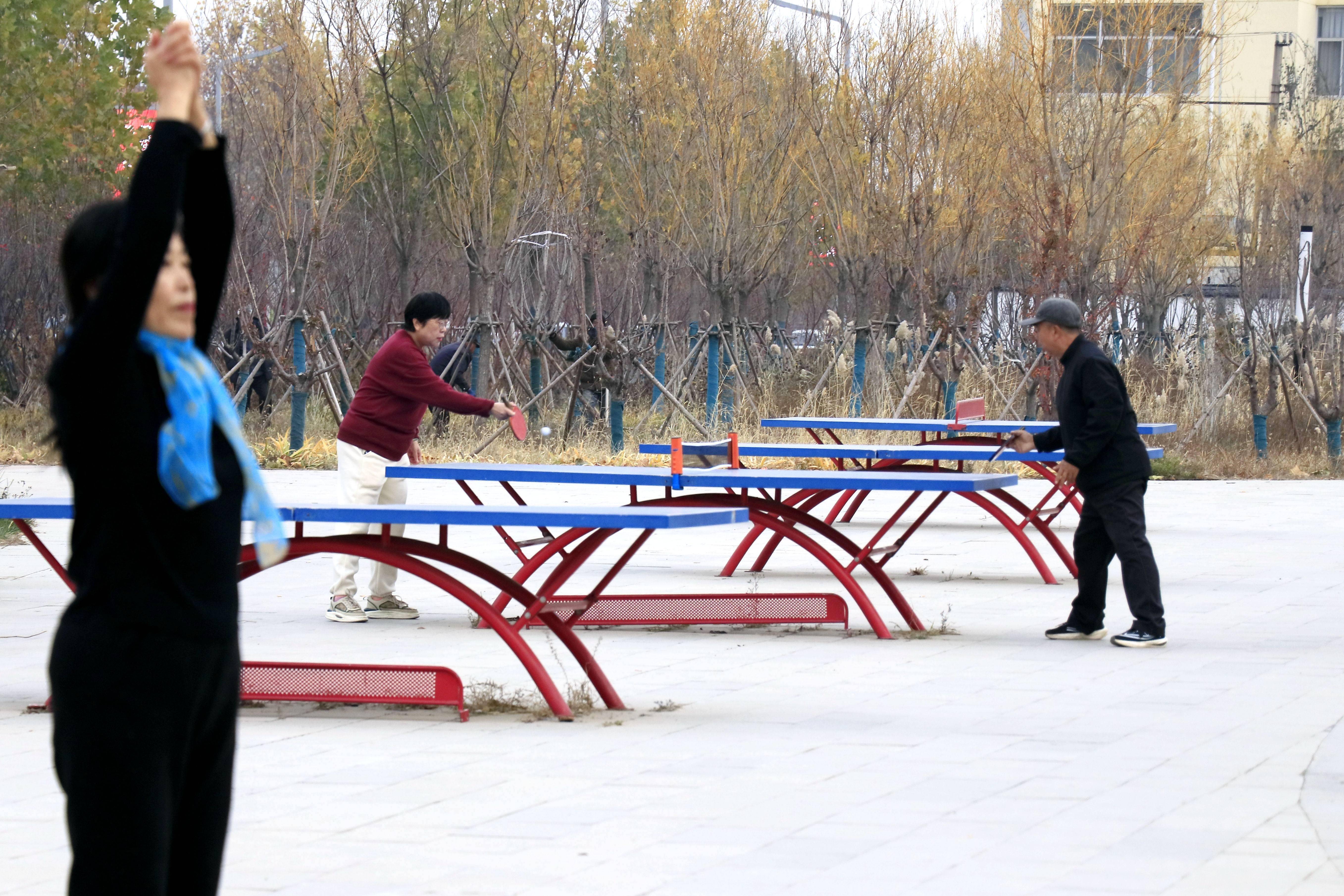 市民在运河区永济路北侧一处街边乒乓球场切磋相似。王杰摄